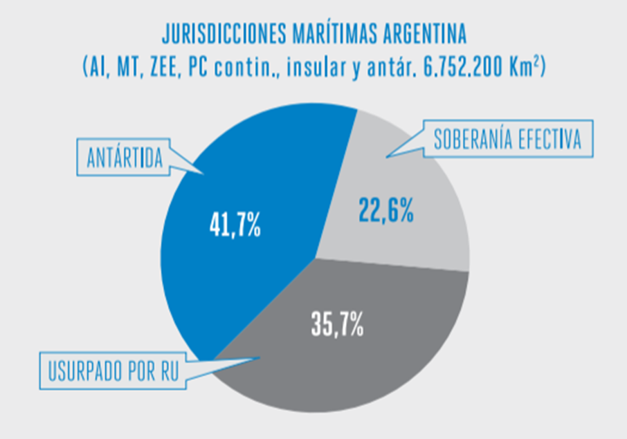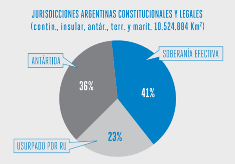 Como es sabido, y como consecuencia del Conflicto del Atlántico Sur, la Argentina bicontinental tiene el 25% de su territorio ocupado por la fuerza por parte del Reino Unido de Gran Bretaña en las Islas del Atlántico Sur y los espacios marítimos correspondientes. Si disgregamos los espacios terrestres de los marítimos, la privación de nuestro territorio cobra otra dimensión.